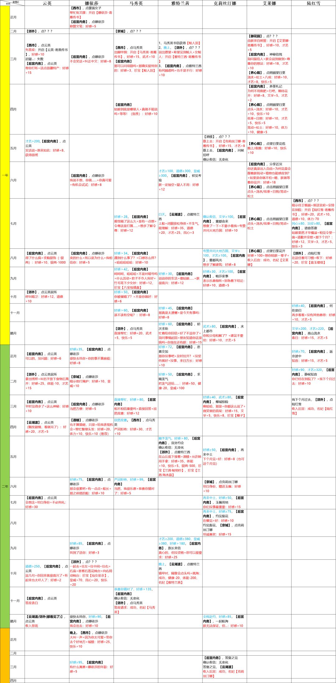 女性剧情妃攻略集锦(表格形式)