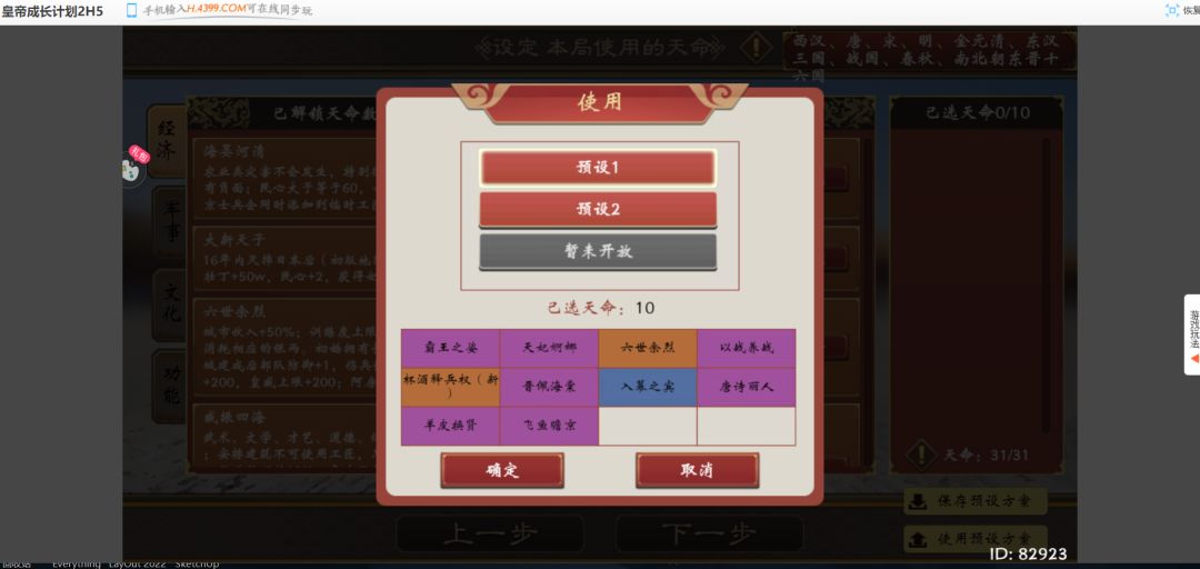 首先呢,后宫嘛,懂得都懂,就是满足感收集感。 那么,普通的女性名妃玩多了(宠幸)当然就腻了,所以有人就盯上男宠了,那么男宠就算是名妃也是不知名虚构的,我们何不如盯上名臣甚至帝皇呢? 这个是我新开的档,赵云,李世民,李白都统统拿下!(李白跟李世民都是面膜换脸,李世民的典藏皮肤竟然在面膜里,太好了!)ps:李世民面膜编号454 其实想把名臣甚至是帝皇拉进后宫很容易,如下示图: 首先开自定义,然后只需要