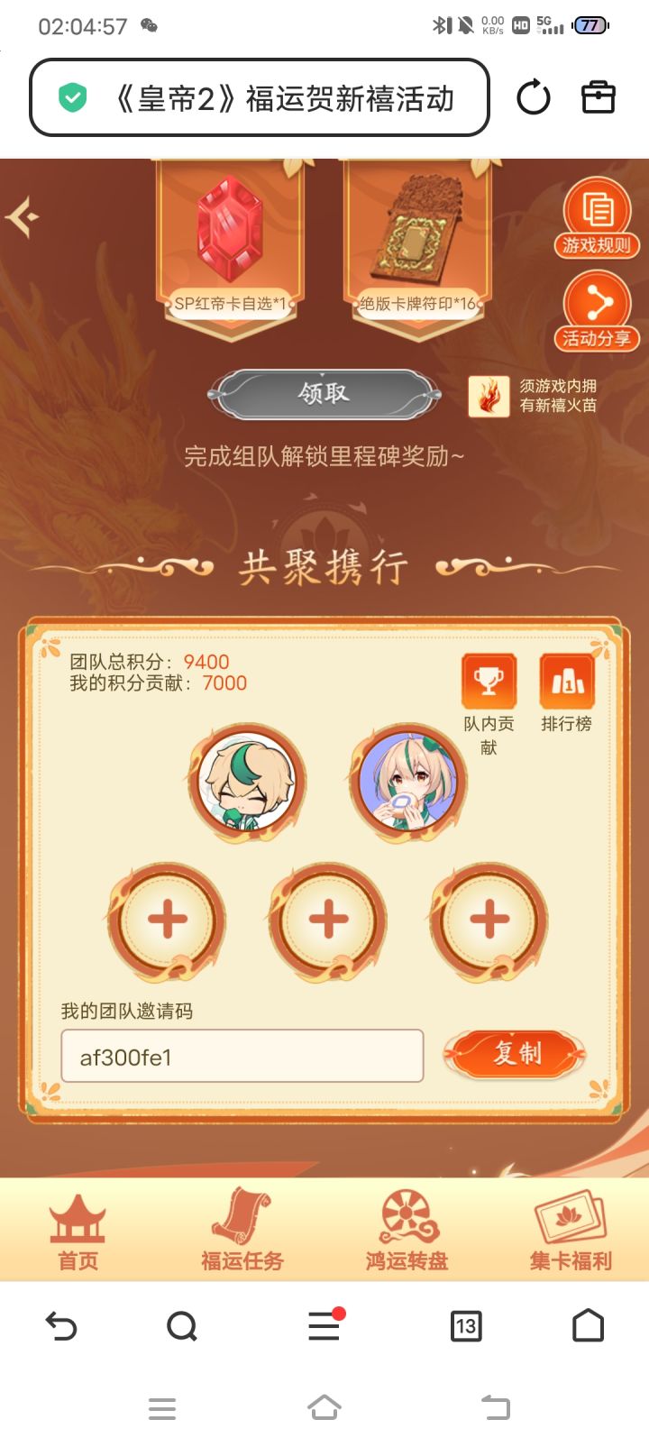 新春国宴组队,队伍码1f280cf6
