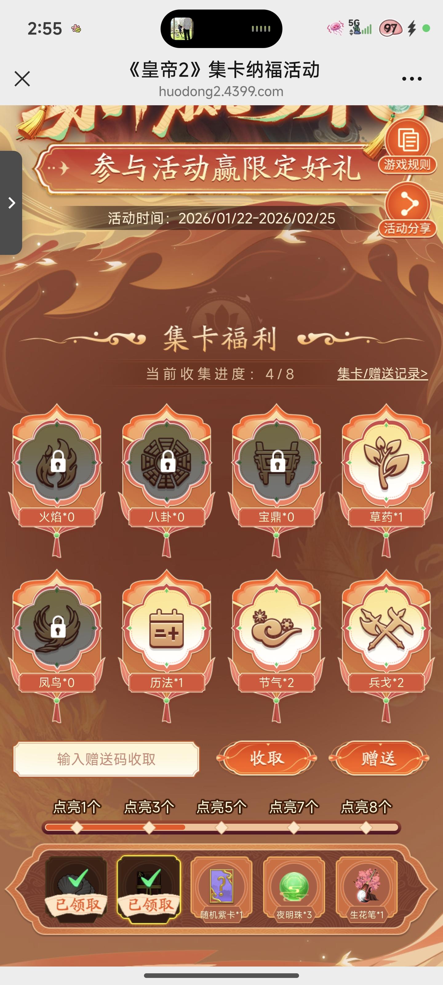 多了一张节气一张兵戈,以前不知道怎么搞这个活动,昨天才开始搞的