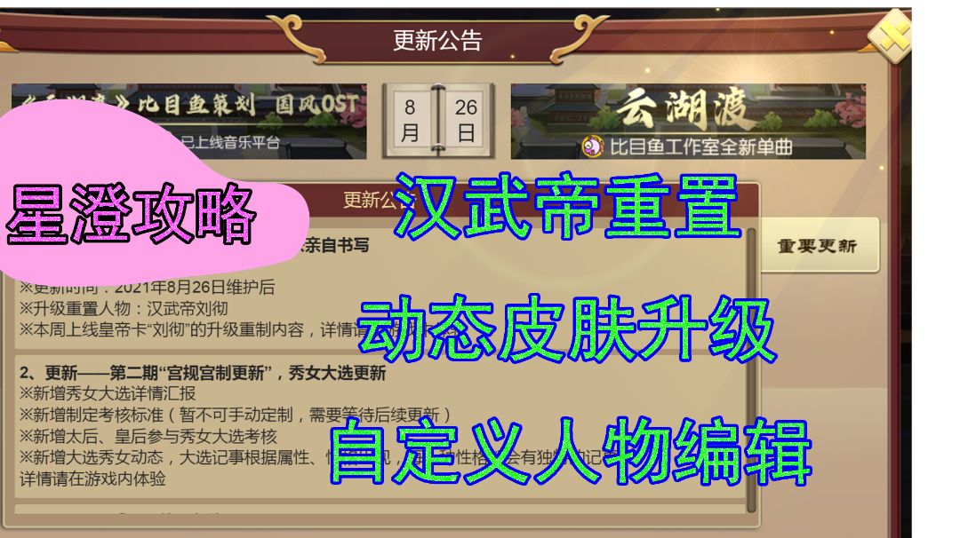 星澄 皇帝成长计划2 帝成更新汉武帝重置自定义人物编辑