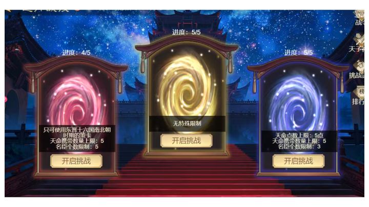 前言1.大家有好的方法也可以发出来交流,有问题也可以评论区提出来,毕竟一千个人有一千个哈姆雷特,看到会及时回复的2.每一层需要2个生花笔解锁,把每层的困境全部点满则只需要打14层,共计22个生花笔即可获得新帝卡刘裕,最左边第5层可不购买!左边第五层不购买!3.万国衣冠使用方法:礼部-国家排名-左边国力排名吞并-从小吞到大4.开局携带名臣太颠防止刺杀或者召唤典韦,困境难度可全部