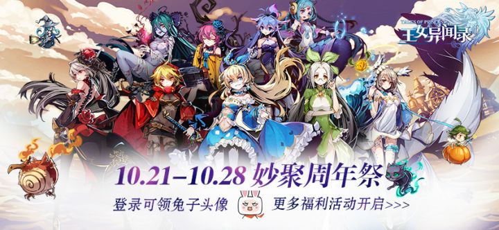 亲爱的勇者大人:为庆祝10月24日「妙聚游戏」周年庆,本次开启妙聚周年祭活动。◆活动时间◆10月21日5:00-10月28日12:00◆活动详情◆◆活动概要◆1.超值优惠礼包限时上架;2.活动期间,登陆游戏领取奖励;3.活动期间,累计充值可领取额外奖励。4.开启周年祭•为兔而战活动5.神秘道具掉落,兑换丰厚奖励6.限时章节召唤水晶开放❤❤❤❤❤❤❤❤❤官方