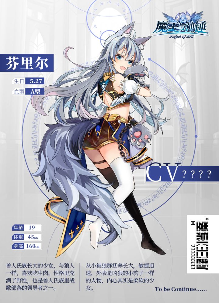 昵称:芬里尔生日:5月27日星座:双子座爱好:狩猎、射术身份定位:无口癖:无人物故事简介狼神,可以变化为狼,力量在消失殆尽的边缘所以时常不能维持人形出现狼的形态,无论怎样都很热爱陆地上的生活,虽然马上就要陷入沉睡,但是一直喜欢这样的日子性格:积极向上,乐观派,元气十足特点:有狼爪的原因是因为力量殆尽不能控制身体偶尔会陷入血腥欲望的杀戮之中