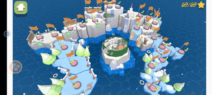 本作在画面以及操作界面上有着简约风格,没有繁杂的操作,这个好评,并且在大厅场景上也有着有趣的互动,你的蠢萌企鹅们在你把帽子拖到场地时,会争先恐后的去争抢帽子,企鹅溜冰地的样子真的很搞笑,给你带来很多乐趣,同时解锁不同的特定关卡,可以解锁不同的帽子,给你的企鹅来装饰。