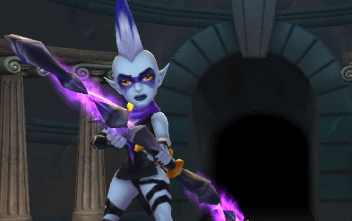 欢迎来到霸王Conqueror,在我们的游戏中你会遇到各式各样的英雄,你将操控他们来保卫亚特兰蒂斯的和平。今天登场的是精灵射手—尼克丝。尼克丝鲁莽而任性,她凡事喜欢自己动手,还常随着自己的鼓声跳舞。她头顶着挑染成深紫色的庞克头,脸上涂着夸张的油彩,她就用这种次文化风格上场作战。阿里翁山峰的精灵部落「青石」是一只古老种族的后裔,这个部落的人具有魔法天赋,因此拥有淡蓝色的肌肤与苍白的头发。虽然传统