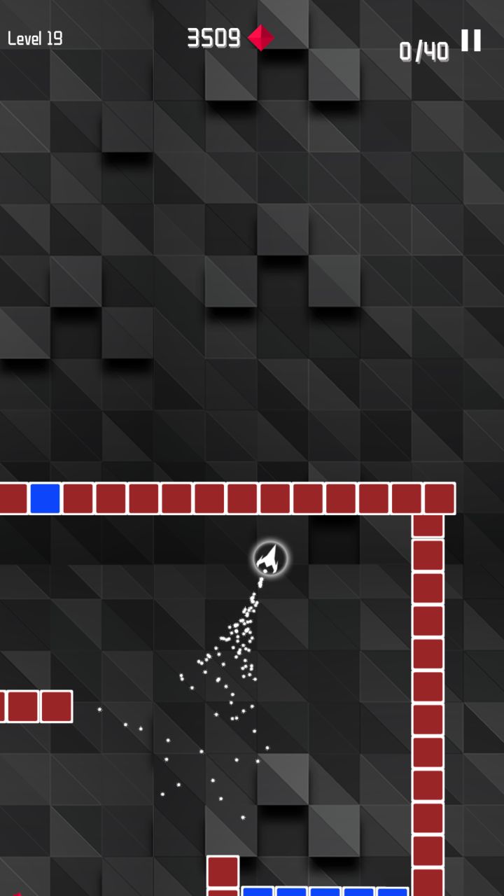 唔。bug?19关。。。强行斜着飞??而且回不来了??方法。。按住要转的方向,点击(有时是双击)反方向。。。额。。没有发现回来的办法。(死掉除外)。。