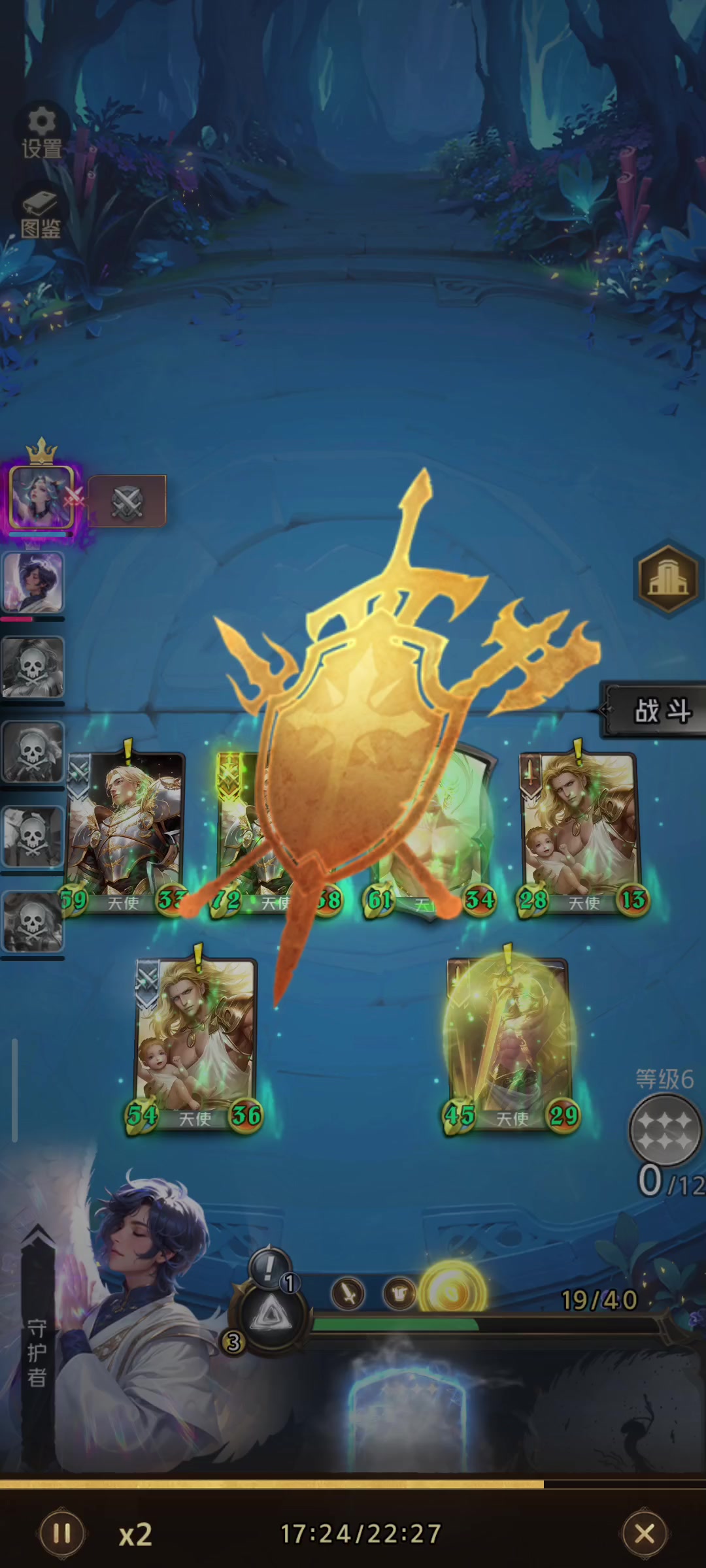 守护者是最容易玩力天使无限盾的英雄。成型有三种情况:一,防具拿院长法袍,每回合稳定复制影分身给嘲讽绿盾力天使(成型难度最低);二,嘲讽绿盾力天使加双炽天使(如视频的展示);三,双嘲讽力天使,其中一个给绿盾。双盾法术可以极大提升阵容的下限,容错会增加很多,优先给力天使(力天使被复活后双盾法术一样会生效),遗言毒法术可以极大提升阵容的上限,运气好一个毒可以换两三个敌人。怕亡灵,恶魔的寡妇,闪避特效。这