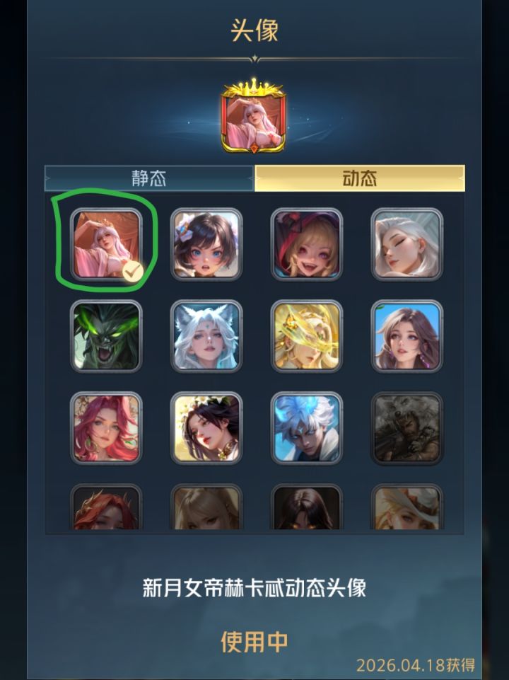 冥月动皮的头像,需要把脸部特写,拉近一些。其他英雄皮肤的头像,脸部镜头没拉那么远!