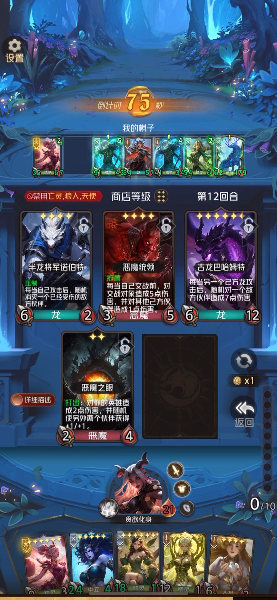 和同一位玩家四局,每次都第二,狼人和魔术师第二正常,苟住混分的。 投机客那局,他是公主,两个人都玩恶魔,前期我凭借经济优势,商店里恶魔所有的组件都被我包了,但公主玩着很顺。 六回合我装备拿壁垒,8回合拿到末日靠壁垒合银,至此我阵容已成,双雕像,白骨,银末日,金噬魂。此后我经济遥遥领先,不停的刷刷刷,却始终不见深渊凝望。最后那个银深渊,还是靠一堆树人团结弄出来的。回头一看,公主都不知道有几个深渊了。