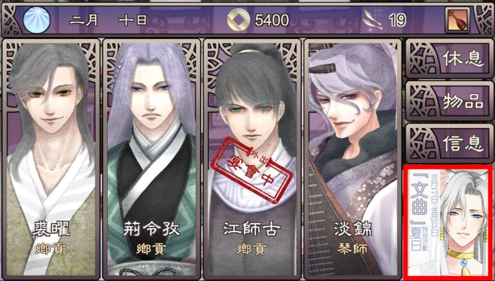 冬日特别活动「文曲」活动时间11月29日晨8:00-12月8日夜24:00活动内容文曲星投错了猫胎,只有考上状元才能重新回到天上,如何让一只猫考上状元,这个艰巨的任务就交给你了!活动参加方式在1.75版及以上的游戏中,待活动开始后,进入游戏界面,右下角会出现活动按钮。点击活动按钮选择进入即可进入活动对活动特别角色「莲蓉」进行培养~如果活动开始后没有出现活动按钮,请关闭游戏重新打开即