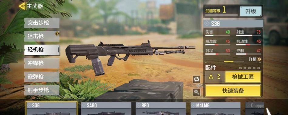 《使命召唤》中常被选择的轻机枪有M4LMG、S36、RPD这三把枪,同时也是最为常用的三把轻机枪。 M4LMG是根据MS改装而来的,因此枪的部分属性与M4基本一致,而且M4LMG是轻机枪中伤害较高的一把枪,同时还拥有射程远、操控性强、后座力小等优点,所以上手难度并不高,压枪也不难。 S36是由Type25改装而来的,是新手的最爱,其火力较猛,并且造型和手感也是深受青睐,可用于火力压制,持续作战能力