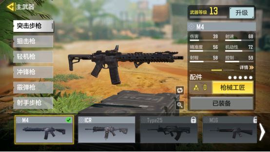 突击步枪中首推M4,M4也是各位新兵首次进入游戏使用的枪械,枪械射击手感非常稳定,后坐力较低,无论是点射还是扫射都能游刃有余,能适应不同情形下的交火,稳定的弹道能更好的打击敌人。 冲锋枪中推荐使用AKS-74U,这款冲锋枪在同类型冲锋枪中具有不错的伤害属性,但是又没有冲锋枪一贯的高后坐力,还保持了较快的射速,精准度也还可以,是属性非常均衡的一款枪械,最重要的是它的射击弹道非常稳定,可以充分弥补新兵