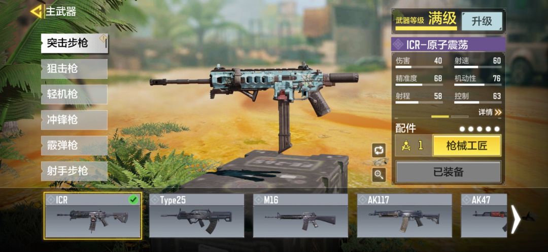 #玩转CODM# 我这两天稍微玩了一下,就我个人而言,给大家推荐几把比较好用的武器。 1.ICR 这个版本的强势武器,万金油武器,可远可近,弹容量充足,甚至有五十发快速扩容弹夹可选。最关键的是三级就可以解锁,赛季任务还送这把枪的紫皮,还要什么自行车。 2.AN94 威力大,可以在中距离依旧保持胸口三发致死,也是在三发致死的枪中手感较好的,但是没有快速弹夹,换弹稍慢。(这枪在体验服已经被改动了,射程