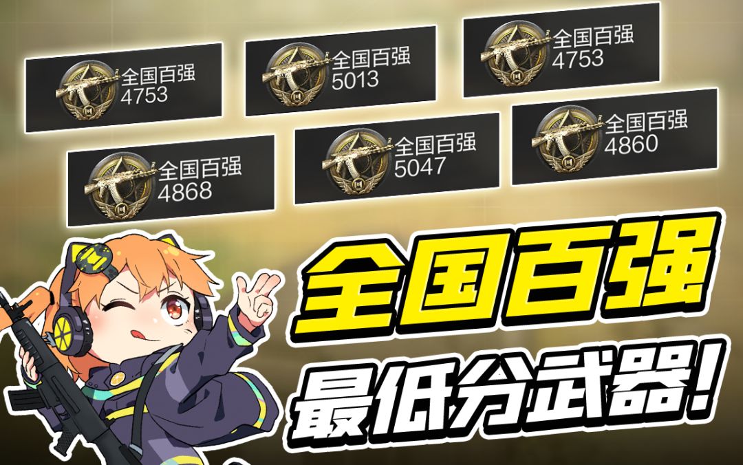 众所周知武器国榜这东西很好拿,但是也是需要一定时间滴!本橘今天就给大家统计一下全国百强最低分武器!帮大家节约时间~