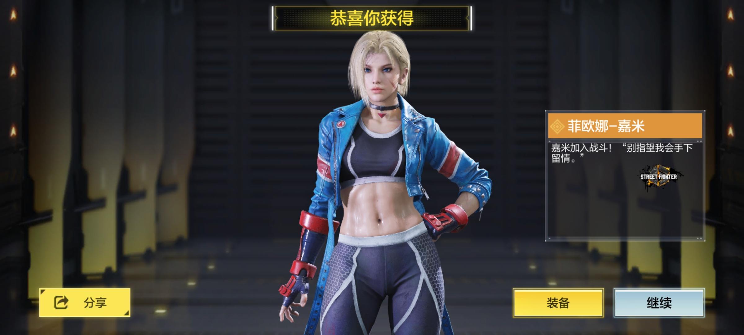 本来今晚12等10连的,10连没有出,想退出睡觉了。然后莫名其妙点这里,发现送三发,也没有中。去武器那里看又送三发,这回第一下冒金色出红光,我就知道要出货了。可惜黑屏没画面。紧张的点跳过,没想到真是想要的嘉米,一句话牛逼!