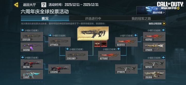 六周年庆全球投票活动落下帷幕由全球玩家共同投出的年度人气冠军神话武器揭晓AK117-终墟 最终摘得了“扳机王座”的桂冠!从海选到8强赛,再到最终决战,汇集全球战士们的关注与期待!为了感谢战士们的热情投票,参与活动的战士可在活动界面领取神话AK117-终墟3天体验资格!一定记得领取哦!此外,神话武器AK117-终墟也将于2026年1月18日开启返场。同时,新版本更新后,AK117-终墟将