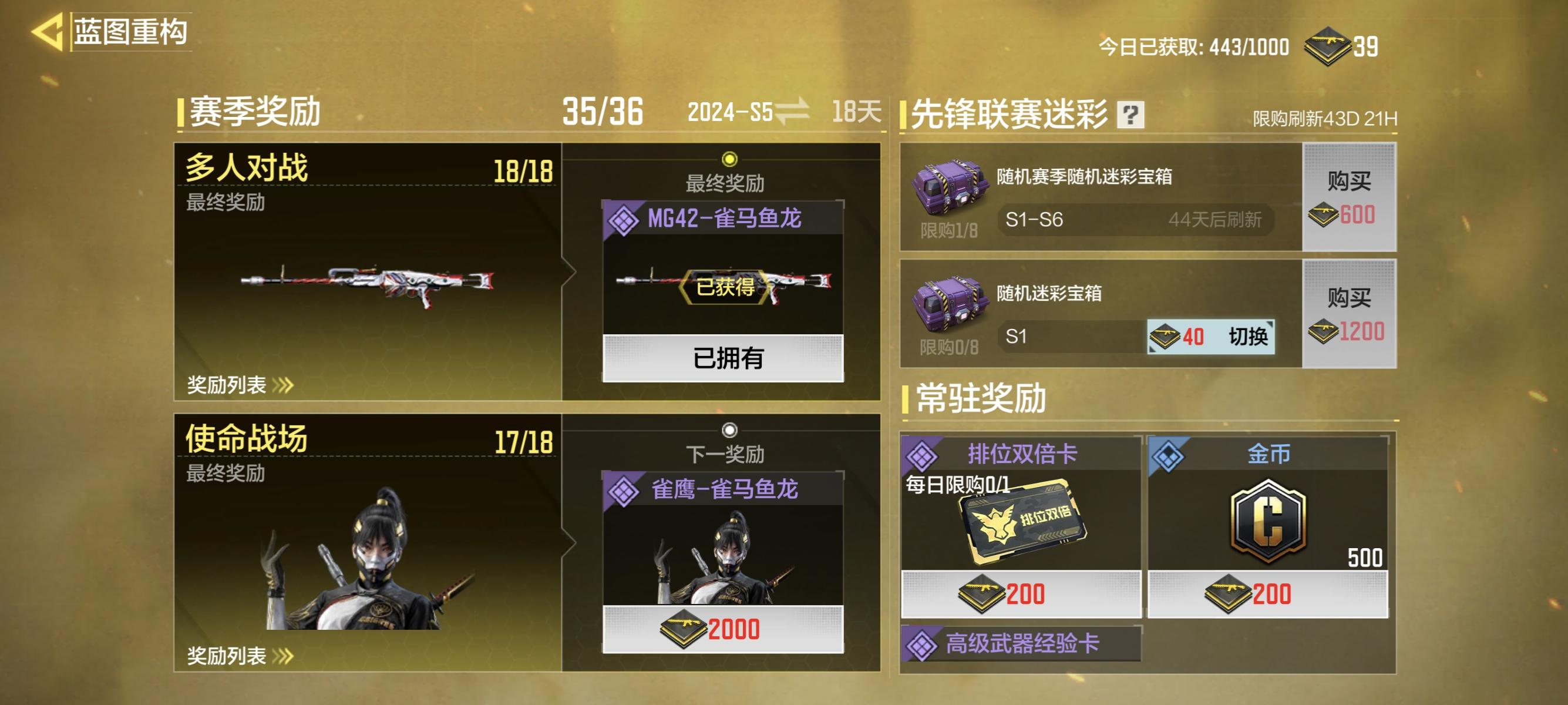 蓝图重构材料这个赛季没用完,下个赛季会清零吗