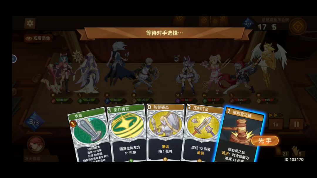 这把我的牌序比较好,侥幸赢了,发这个视频没别的意思,只是给新人举个例子,遇到otk阵容时应该优先集火谁,大部分时候我会优先集火对面输出
