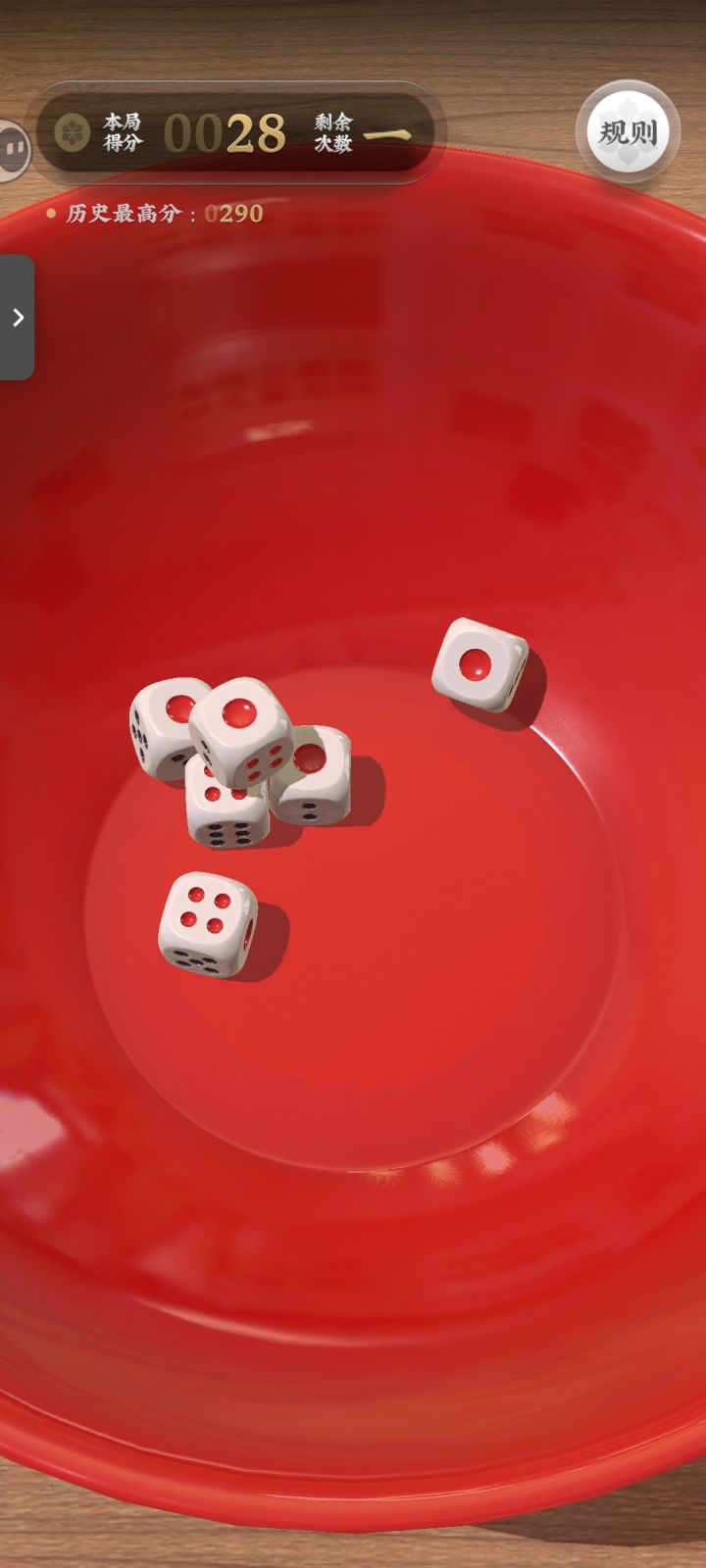 把几颗骰子丢进瓷碗,叮叮当当,随机的展示花色点数。玩家都是老客,打眼就知道分数,挣的面红耳赤。