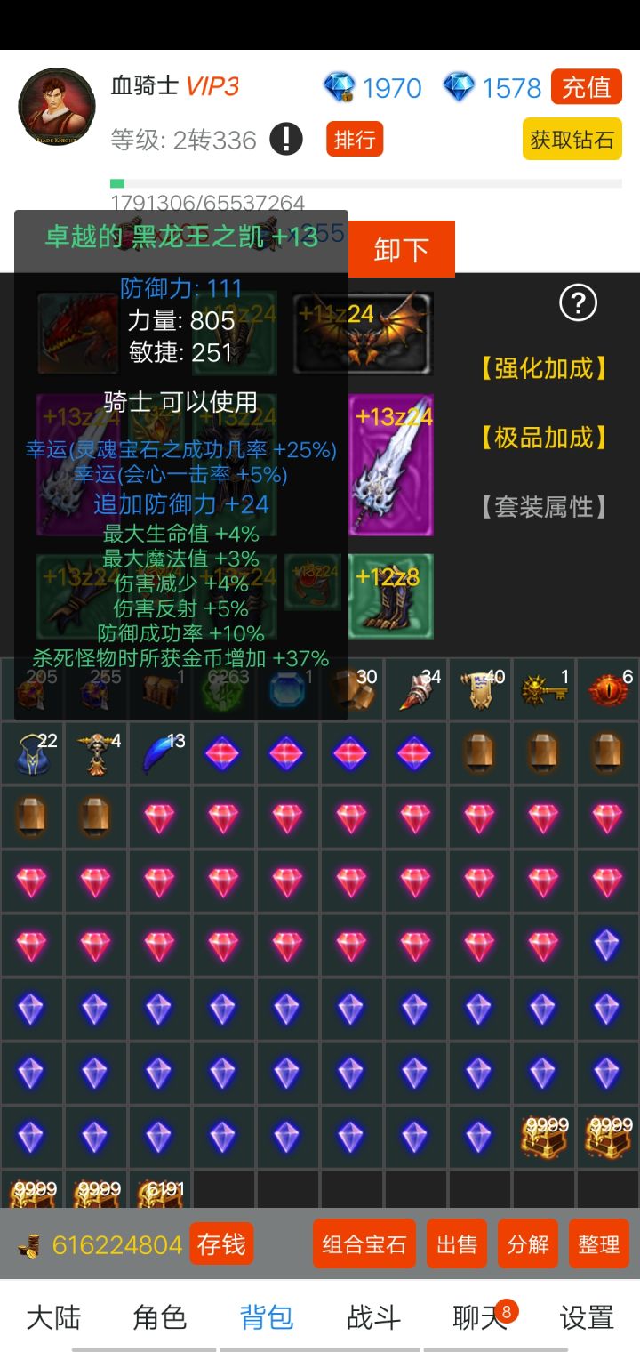 1*开局的新手套装不要卖不要扔,加百分之40金币每件装备,后期金币超级缺