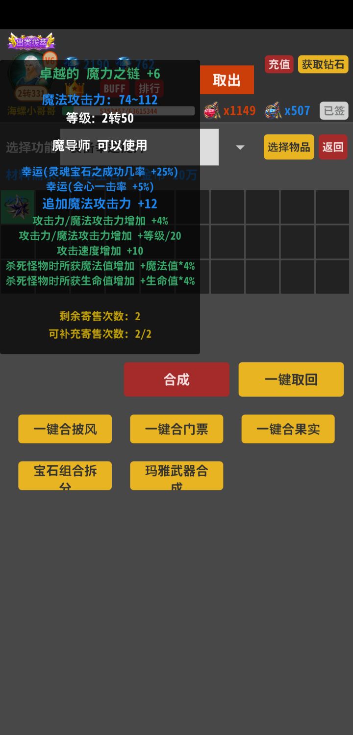 1*开局的新手套装不要卖不要扔,加百分之40金币每件装备,后期金币超级缺