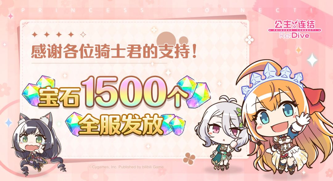 亲爱的各位骑士君: 感谢各位骑士君一直以来的支持与喜爱~我们准备了一份感恩礼物,还请骑士君们查收。 ■ 发放时间 7月30日 12:00 ■ 发放内容 宝石×1500 ■ 发放对象 玩家等级≥4的全体骑士君 ■ 领取期限 2021年7月30日 12:00~2022年7月30日 23:59 今后也请多多支持《公主连结Re:Dive》!