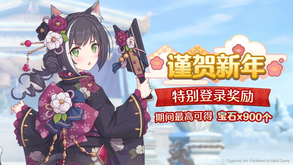 亲爱的各位骑士君: 1月1日05:00后,游戏内将开启「连续三日新年特别登录奖励」!活动期间每日登录游戏即可获得宝石奖励,期间总计可获得「宝石x900」奖励! ■ 活动时间 1/1 05:00~1/4 04:59 ■注意事项 1.活动期间只有登录游戏才可获得宝石奖励。 2.登录宝石奖励将于每日05:00进行更新。 今后也请多多支持「公主连结Re:Dive」!