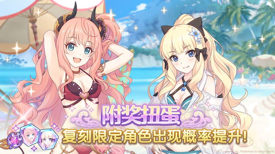 亲爱的各位骑士君: 6月16日维护后,期间限定角色★3「咲恋(夏日)」、★3「铃奈(夏日)」将在附奖扭蛋和白金扭蛋中限时登场! 在附奖扭蛋中,期间限定角色「咲恋(夏日)」、「铃奈(夏日)」的出现概率将进行提升!此外,还可获得额外奖品报酬。 「奖品报酬」分为1等~6等,1等可获得40个记忆碎片! 使用「抽取10次」时,必中一个5等及以上的奖品报酬! 本次附奖内容中可选获得的记忆碎片为PICK UP角