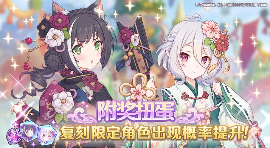 亲爱的各位骑士君: 7月24日11:00起,期间限定角色★3「佩可莉姆(新年)」、★3「似似花(新年)」将在附奖扭蛋和白金扭蛋中限时登场! 在附奖扭蛋中,期间限定角色「佩可莉姆(新年)」、「似似花(新年)」的出现概率将进行提升!此外,还可获得额外奖品报酬。 「奖品报酬」分为1等~6等,1等可获得40个记忆碎片! 使用「抽取10次」时,必中一个5等及以上的奖品报酬! 本次附奖内容中可选获得的记忆碎片
