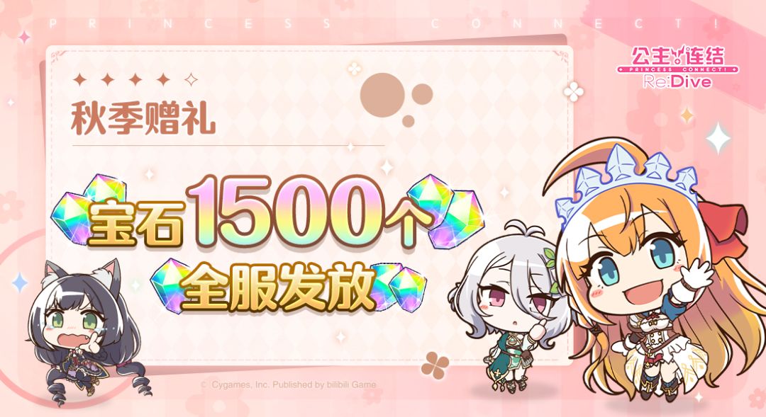 亲爱的各位骑士君: 黄金周假期已经到来,各位骑士君打算怎样度过小长假呢? 为了感谢各位骑士君一直以来的关注与支持,我们准备了一份假期礼物! ■ 发放内容 免费宝石×1500个 ■ 发放对象 玩家等级≥4的全体骑士君 ■ 领取期限 2023年5月1日12:00~2023年5月7日23:59 今后也请多多支持《公主连结Re:Dive》!