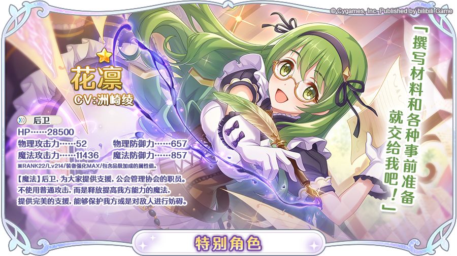 亲爱的各位骑士君: 10月13日维护后,将追加新功能「特别角色」! 本次新登场的特别角色为「花凛」! 特别角色为不会于「扭蛋」和「活动」中登场,特别角色必须使用一定数量的记忆碎片及玛那来使其成为伙伴。 有关花凛的角色详细介绍,请于「特别角色」的「角色详情」中进行确认。 ■花凛的解锁条件 ・记忆碎片(可选择)×3,000 ・玛那×500,000,000 特别角色设有解锁条件,可设置的道具种类及数量能