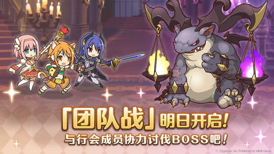 亲爱的各位骑士君: 「团队战」将于9月28日05:00正式开展! 团队战中将会出现非常强力的怪物,与行会成员同心协力进行挑战吧! 团队战结束后,将对团队战期间各行会对怪物造成的伤害总值进行排名。 根据排名区间的不同,将对行会全员发放相应数量的报酬! ■活动时间 9/28 05:00~10/3 23:59 有关团队战详情还请参阅→https://game.bilibili.com/pcr/news.
