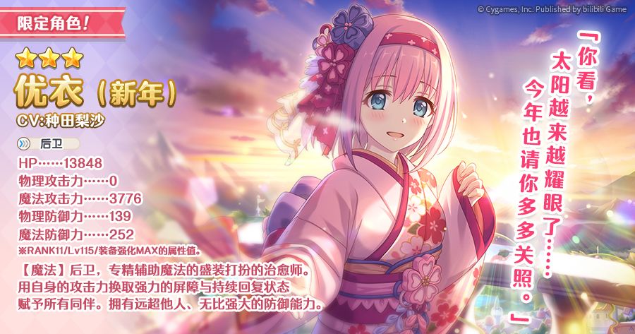 亲爱的各位骑士君: 我们预计于1月22日 11:00~14:00期间对全平台进行一次更新维护。 更新结束后,游戏内将同时开启「优衣(新年)」 PICK UP扭蛋活动,开启「★3必得白金扭蛋」,并上架豪华扭蛋券礼包! ※ 活动详情请于游戏内或官网公告进行确认。 今后也请多多支持《公主连结Re:Dive》!