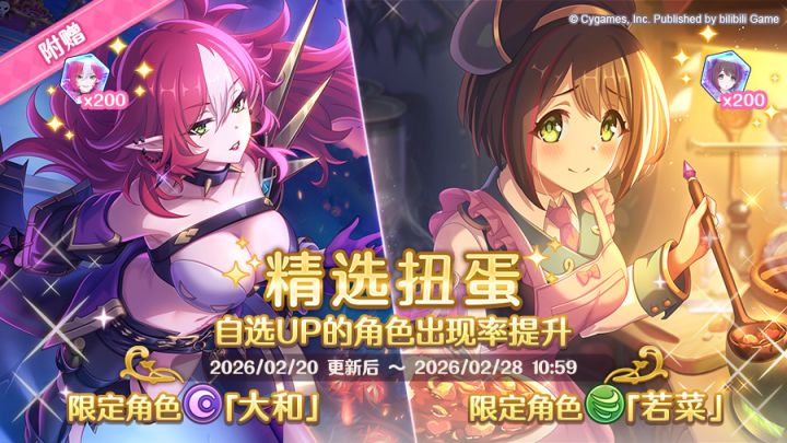 亲爱的各位骑士君:我们将于2月20日 11:00进行一次线上热更新。届时,您将会收到数据更新提示,更新后重新登录游戏即可完成更新,正在进行的战斗进程将不会受到影响。※建议在Wi-Fi环境中进行更新,为了确保您的账号数据安全,请在本次热更新时提前结束关卡,避免在更新前进入战斗场景;更新内容:开启「大和」「若菜」自选精选扭蛋非常感谢您的支持与配合。今后也请多多支持《公主连结Re:Dive