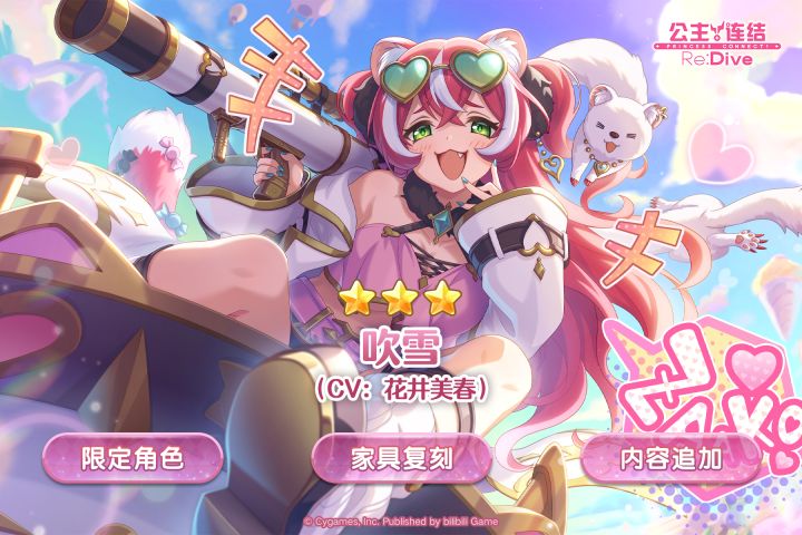 亲爱的各位骑士君:我们预计于2月13日11:00~16:00期间对全平台进行一次更新维护。维护结束后,期间限定角色★3「吹雪」(CV:花井美春)即将登场!游戏内将同时开启「吹雪」精选扭蛋;公会之家将限时复刻「咖啡厅」主题家具;回忆留声机将追加新的背景音乐;大师商店将上架新的商品道具,并追加新的游戏内容!详细活动日敬请点击下方图片查看↓今后也请多多支持《公主连结Re:Dive》!