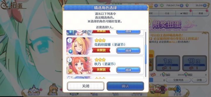 亲爱的各位骑士君:3月9日11:00起,游戏内将开展「圣诞节★3角色必得白金扭蛋」!在圣诞节★3必得扭蛋进行「抽取10次」时,第10个角色必定会出现圣诞节★3角色。圣诞节★3必得扭蛋在开展期间内仅限使用付费宝石抽取一次。■圣诞节★3必得扭蛋开展期间3/9 11:00~3/16 10:59 ■本次「圣诞节★3角色必得白金扭蛋」中会出现的圣诞节★3角色如下・绫音(圣诞节)・千歌(圣诞节