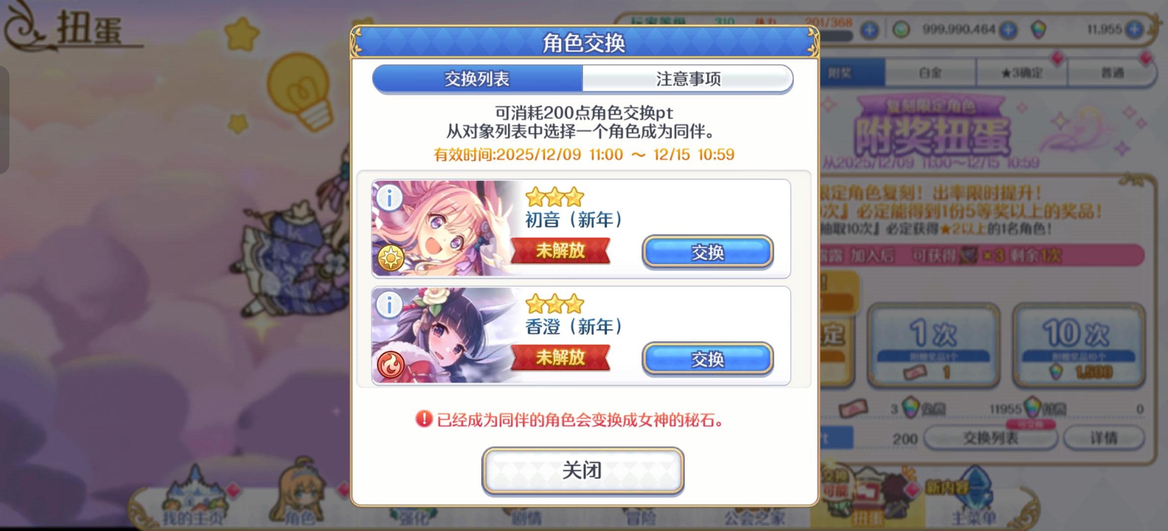 亲爱的各位骑士君: 2026年1月14日维护后,在游戏内购买「公主招募月度凭证」和「公主进阶月度凭证」后开启的「特别凭证扭蛋」中,可获得、可交换的对象角色追加! 可获得、可交换角色更新范围:1月14日维护后购买「公主招募月度凭证」或「公主进阶月度凭证」开启的「特别凭证扭蛋」 追加角色:克蕾琪塔(圣诞节)普雷西娅(堕天使)可璃亚(堕天使) ※若骑士君在1月14日维护前购买了「公主