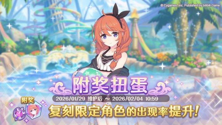 1月29日维护后,复刻限定角色附奖扭蛋正式开启!附奖扭蛋中,期间限定角色★3「优妮(冬日)」的出现概率提升!