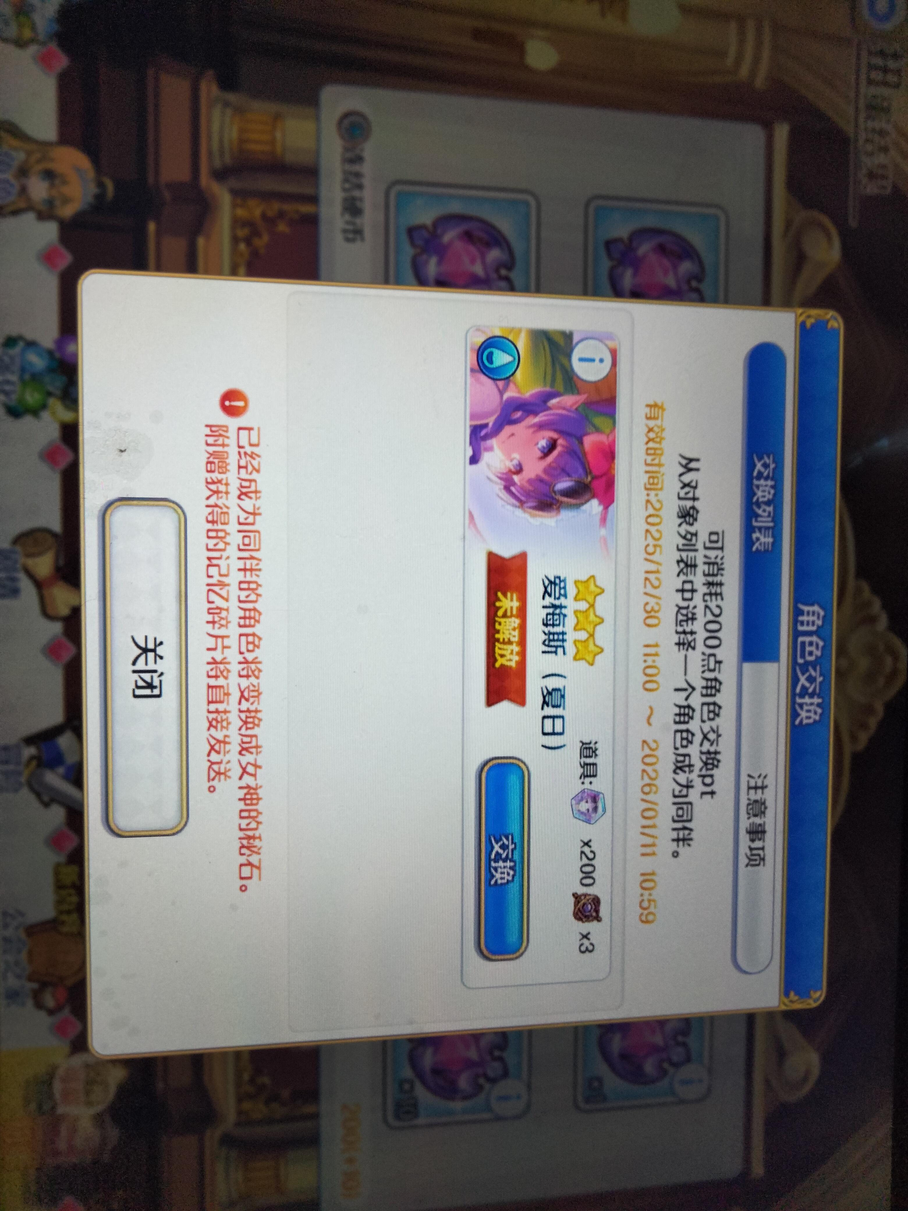 12月30日维护后,期间限定角色★3爱梅斯(夏日)(CV:相坂优歌)将正式登场!精选扭蛋中,「★3爱梅斯(夏日)」的出现概率将进行提升!抽中角色后还可获得角色的记忆碎片作为奖品!