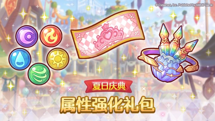 亲爱的各位骑士君: 1月14日维护后,游戏内「宝石商店」中将追加「夏日庆典 属性强化礼包」! ■可购买期间2026/1/14 维护后~ ■礼包说明「夏日庆典 属性强化礼包」售价78元,期间内限购5次。购买后可获得白金扭蛋券、星幽碎片以及星幽光球的特惠礼包!详情内容如下:・白金扭蛋券×5・星幽碎片×1500・星幽光球(火)×3000・星幽光球(水)×3000・星幽光球(风)×