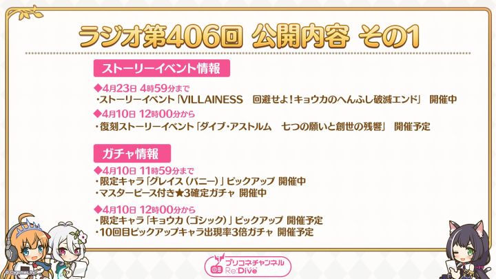 ⚔️ 公主连结日服爆新情报,镜华哥特登场,缓慢更新主线总算再次推进 由Cygames出品的角色扮演手机游戏《公主连结ReDive》日服在4月9日晚间时分,在第406回广播情报中爆料未来大量新内容,除新限定角色镜华哥特正式开启获取外,未来游戏主线 第3部第16章后篇也将在15日正式开放 此前因重心转移问题,本作游戏剧情陷入更新缓慢状态,此次新主线的推进引发玩家讨论,后续剧情或将再次推出凯露全
