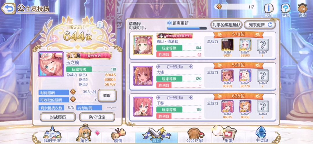 今天正打第五次公主竞技场的时候来了个短信,出去看完短信再回来这第五次对战就直接没了,看次数就能看见5次都完了,但看对战履历今天就只有4次对战