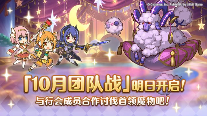 亲爱的各位骑士君:「团队战」将于10月25日05:00正式开展!团队战中将会出现非常强力的首领魔物,与行会成员同心协力进行挑战吧!团队战结束后,将对团队战期间各行会对首领魔物造成的伤害总值进行排名。根据排名区间的不同,将对行会全员发放相应数量的报酬!■活动时间10/25 05:00~10/29 23:59有关团队战详情还请参阅官网~今后也请多多支持《公主连结Re:Dive》!