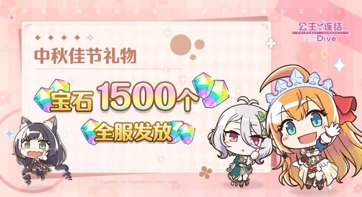 亲爱的各位骑士君:桂影摇清辉,明月照团圆,中秋佳节将至,祝骑士君月圆人圆事事圆满!我们准备了一份礼物,已发放至礼物盒内,请留意领取哦~♪发放时间:10月6日 12:00发放内容:免费宝石×1500发放对象:2025年11月6日23:59前完成注册且玩家等级≥4级的全体骑士君领取期限:2025年10月6日 12:00~2026年10月6日 23:59今后也请多多支持《公主连结Re:Div
