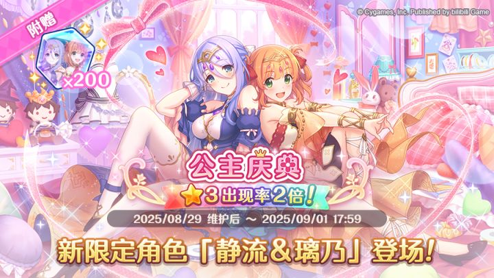 「我们是无敌的姐妹♪」8月29日维护后,期间限定角色★3静流&璃乃(CV:生天目仁美&阿澄佳奈)正式登场!★3角色出现概率为通常的2倍的「公主庆典扭蛋」同步开展中!还请骑士君们不要错过哦♪