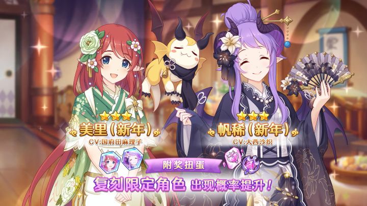 9月1日18:00起,复刻限定角色附奖扭蛋正式开启!附奖扭蛋中,期间限定角色★3「美里(新年)」、★3「帆稀(新年)」的出现概率提升!