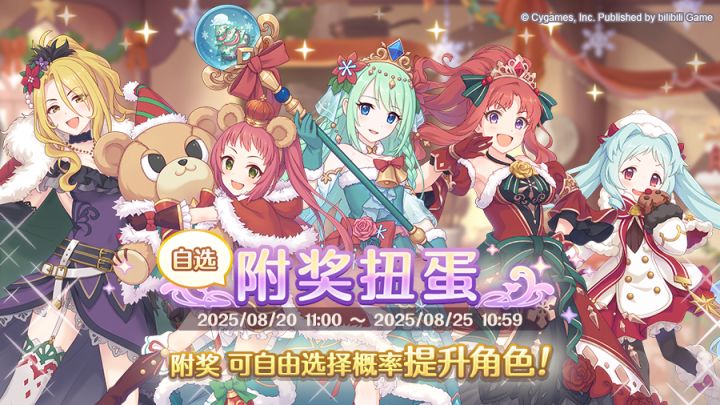 亲爱的各位骑士君:8月21日11:00起,游戏内将开展「自选复刻限定角色附奖扭蛋」!在自选附奖扭蛋中,以下角色将在活动期间内再次登场并作为「精选候补角色」出现。<精选候补角色>・千歌(圣诞节)・绫音(圣诞节)・克莉丝提娜(圣诞节)・秋乃(圣诞节)・宫子(圣诞节)在「精选候补角色」中选择角色之后,该角色在附奖扭蛋中出现的概率将会提升。此外,在该扭蛋中进行抽取后,还可以获得「奖品报