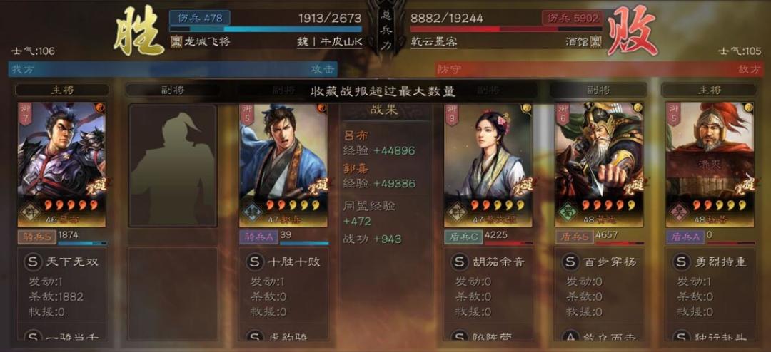 三国志战略版吕布一场4.9W输出,打了6028战功,真能奶!