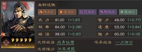 一、前言: 今天小编来为大家讲讲吴国超标武将太史慈,这个角色有多牛!今天就和小编一起来看看这个角色的强势机制吧!二、武将讲解: 太史慈在三国志战略版中也算是数一数二的强势类型的主c或者是副c角色,他自身的兵种适应性也是比较优秀的骑兵、弓兵,他可以配合多种兵种,比如说锦帆军、白马义从、虎豹骑、西凉铁骑,甚至是象兵都能跟太史慈搭一搭,非常强势。 自身的基础属性在一级的时候,他的武力、智力和统率这三个属